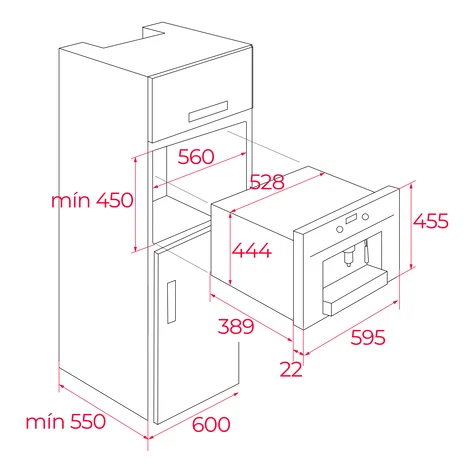 - Raíles telescópicos para una fácil extracción de la cafetera